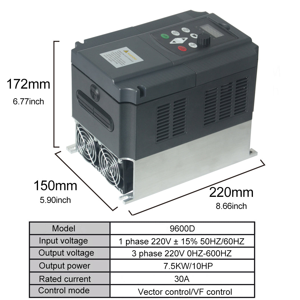 NFLIXIN 220V Frequency inverter VFD - 5.5KW/7.5KW, 1-Phase Input 220V, 3-Phase Output 220V